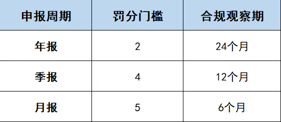 罚款阈值会因申报周期的变化而有所不同,如下: