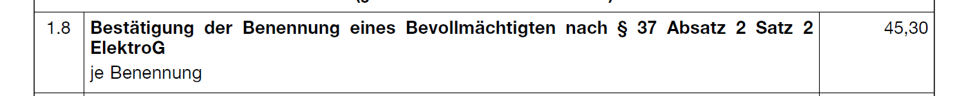 根据ear的收费表,从2023年1月1日开始,代理确认的费用是45.3欧元(不含税)。请注意,这个费用是每次代理确认时收取的费用,不包括其他WEEE费用的成本。
