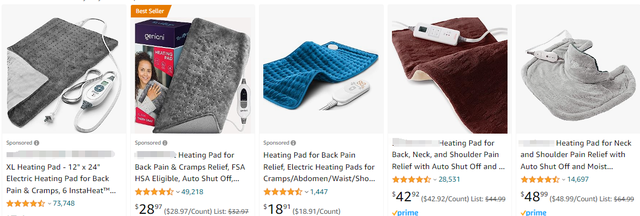 既可保暖又可用于放松或缓解疼痛的加热垫是冬季的抢手货,亚马逊上销量好、留评多的产品不在少数。