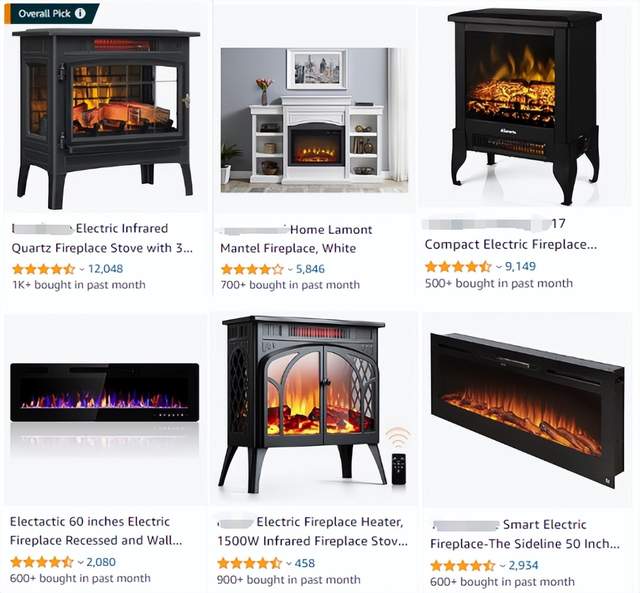 电壁炉既可以保留传统壁炉的浪漫休闲,又能解决污染严重、难以控温的缺点,是很多欧美家庭会选择的冬季取暖产品,亚马逊有不少产品上月销量过百甚至破千。
