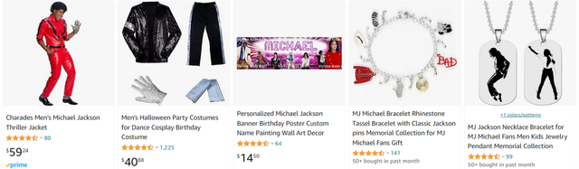 巨星Michael Jackson迈克尔·杰克逊拥有独特的演唱风格和舞蹈动作,俘获歌迷众多。有热度有流量,自然会有不少周边产品,在亚马逊上输入关键词搜素,发现有8000+相关listing在售,如今发案维权,恐怕有不少店铺遭殃。